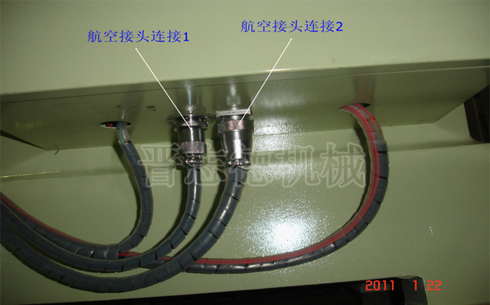 ②圖(二)、當機架拆裝后,此航空接頭連接1、2會被移位,當機架重新定位安裝后,只需將此連接處的航空插頭對照原孔位安裝就好,簡單方便。
