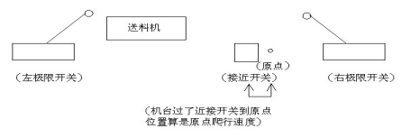 ①在左限開關至原點之間機臺停止時沒有碰到左右限開關時按下機械歸位將會回至初始位置注:必須是按過一次原點歸位之后機械歸位開關才起作(所回到原點位置是偏擺初始位置設置的長度即是原點位)。例圖: