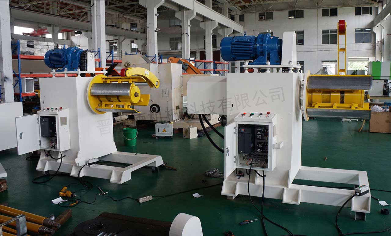 油壓重型材料架是專門針對寬料、重料而研發(fā)制造的機型,其將標(biāo)準(zhǔn)型重型材料架的手搖漲縮方式改為油壓漲縮方式,剎車由普通剎車改為分離式碟剎,同時變頻器、壓料臂的添加,以及主軸、機體的加固,使得油壓重型材料架能夠用于大型寬料、大噸位重料的放料與開卷,目前晉志德油壓重型材料架載重量可訂制20噸,料寬可訂制1800毫米。